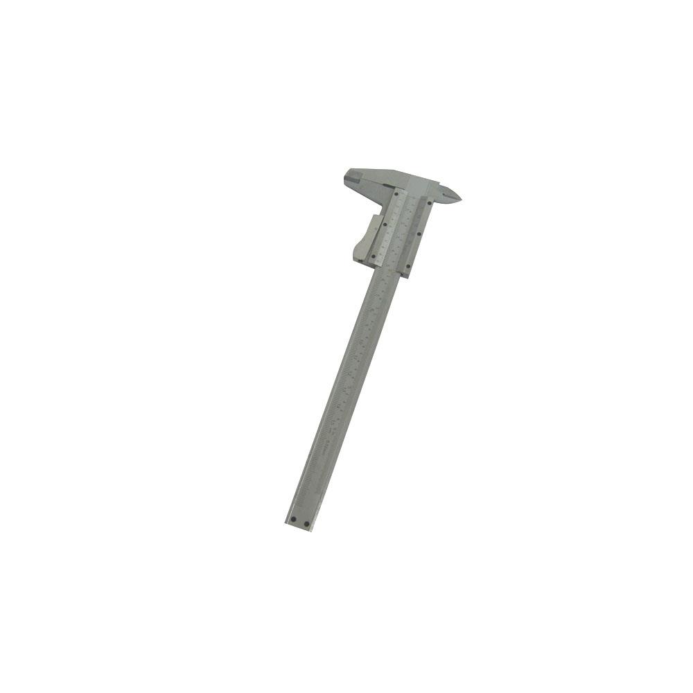Modello corsoio con bloccaggio a pulsante Acciaioinox cromato Lunghezza totale mm 230 - Misura utile mm 150 Lunghezza becchi mm 40 Misurazione minima mm 1/50