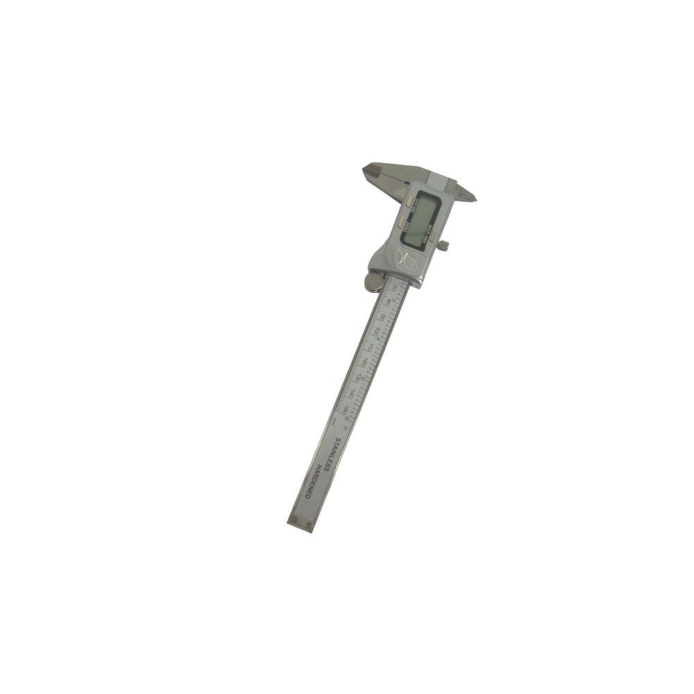 Modello elettronico con bloccaggio a vite Acciaioinox cromato - Quadrante digitale Lunghezza totale mm 230 - Misura utile mm 150 Lunghezza becchi mm40 - Resistente all'acqua Misurazione minima mm 1/100