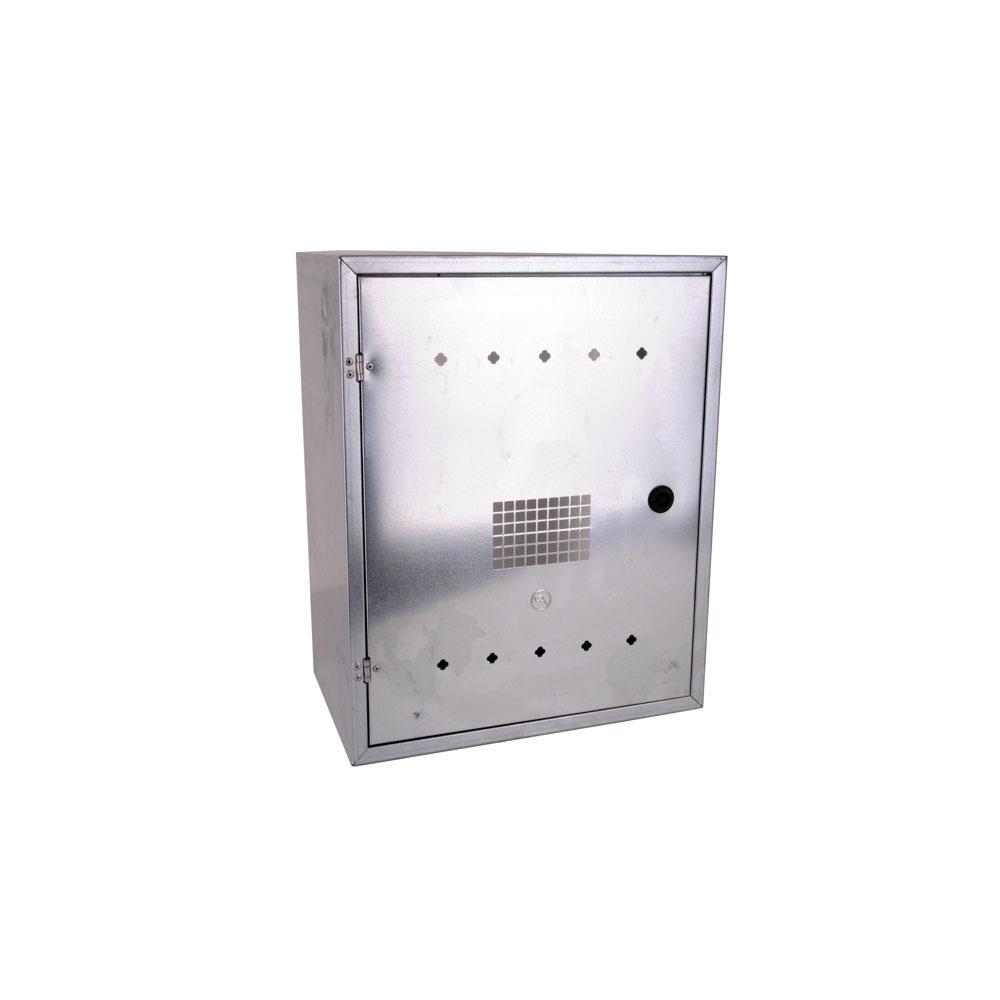 Struttura lamiera zincata spessore mm 0,8 Cerniere acciaio inox Chiusura di sicurezza Fori ventilazione - Profondita' mm 300 Bordi interni anti taglio Griglia lettura contatore