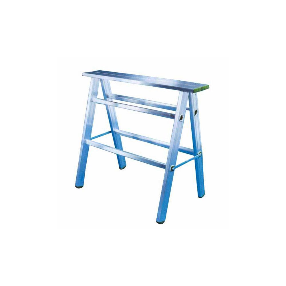 Struttura e piano in alluminio Compassi antidivaricamento in acciaio Altezza cm 83,5 - Larghezza cm90 - Peso kg 6,0 Piano lavoro cm 16,5x90 Utilizzoper formazione tavoli e piano appoggio