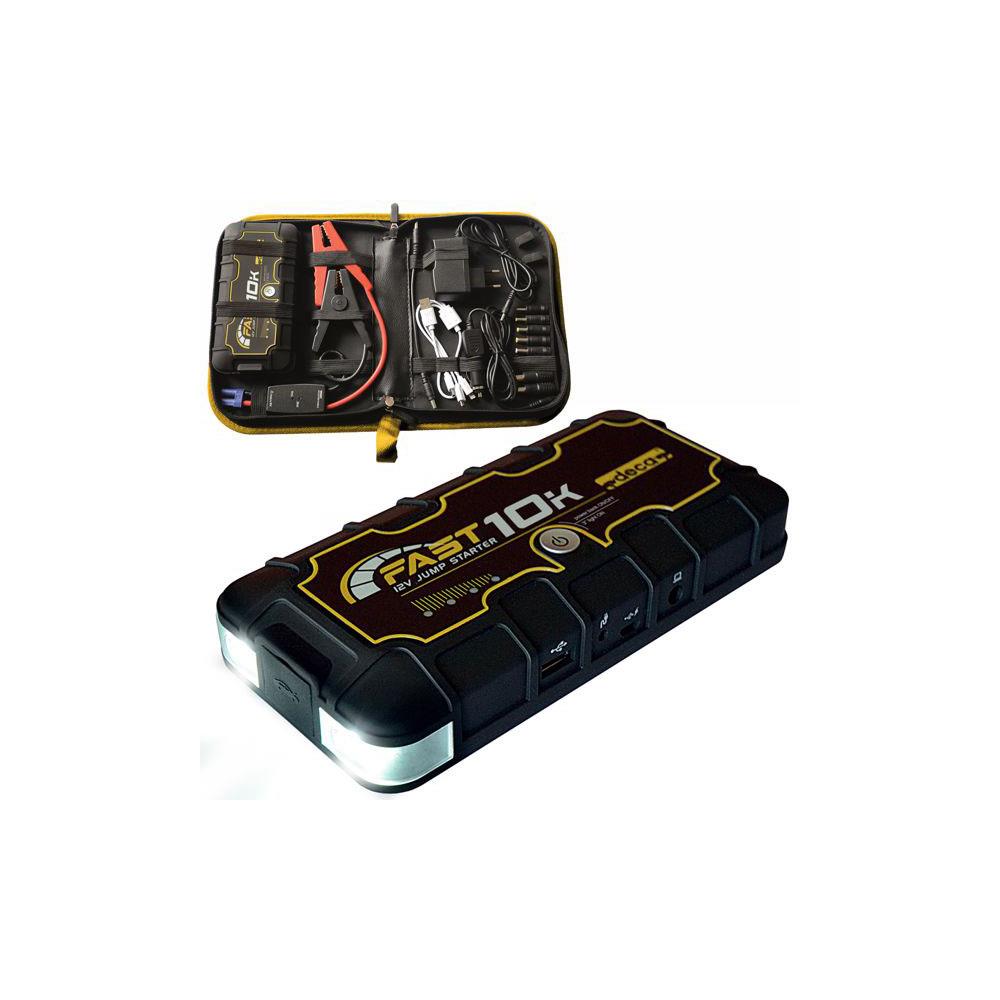 Avviatore portatile a batteria Ah 10 Tensione avviamento V 12 - Alimentatore 230V 12V Adatto per avviamento rapido moto e auto Power bank per smartphone, tablet e note book Dotazione: cavo alimentazione, cavo avviamento, cavo USB con adattatori, adattatore auto Set Pz 9 adattatori jack Doppia luceled integrata Non danneggia l'elettronica del veicolo Dimensioni mm 170x82 h 32 - Peso kg 0,34