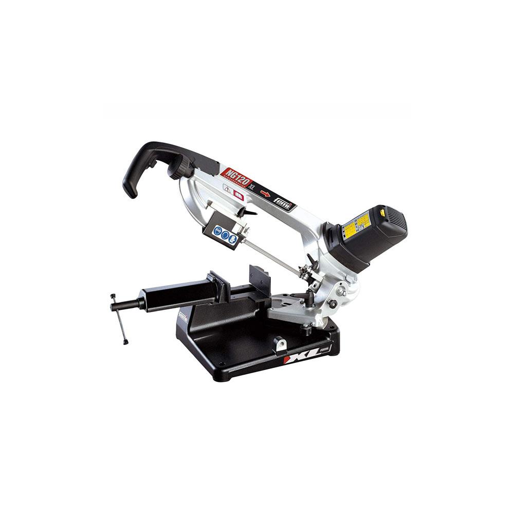 Potenza watt 1300 - Peso kg 18,0 Arco e morsa alluminio - Base acciaio Lama mm 1440x13x0,65 - Taglio a secco Capacita' taglio 90^ mm 120 60^ mm 50 45^ mm 78 Inclinabile 45^ - Dimensioni cm 90x40 h 52