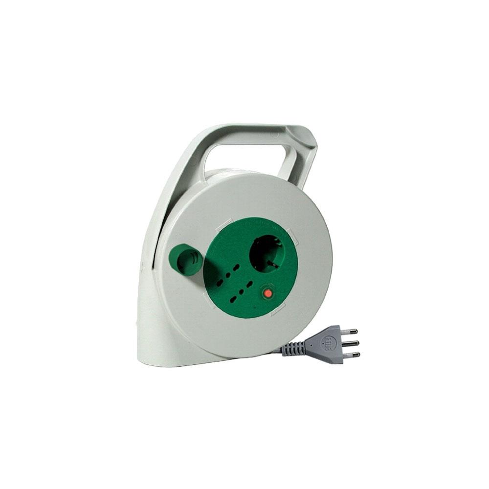 Avvolgicavo civile con disgiuntore serie PUMA Materiale termoplastico resistente a urti e fuoco Sezione cavo mmq 3x1,5 2 prese 2P+T + 1 SK 16A - Spina 2P+T 16A 250V Diametro tamburo mm 195