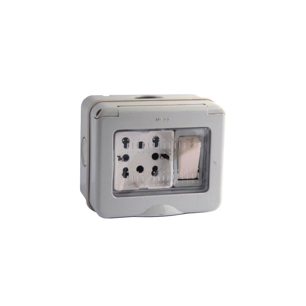 PRESA BIPASSO+SCHUKO ESTERNA+DEVIATORE SPORTELLO