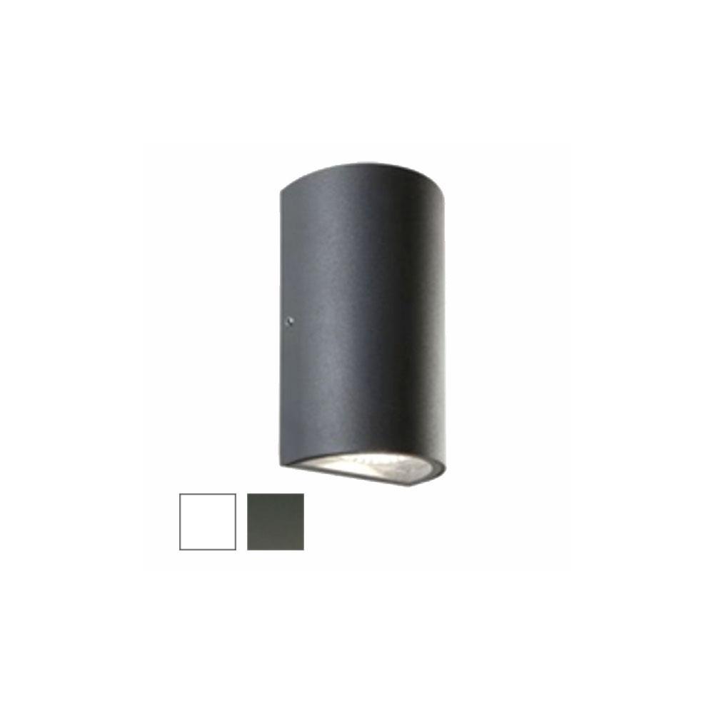 Alluminio pressofuso colore bianco/grigio Diffusori vetro trasparente bidirezionali 2 led - watt 12- Lumen 700 - Luce fredda 4000k Protezione IP 54Dimensioni cm 16x9 h 5,5 Applicazione a parete Colore bianco e grigio