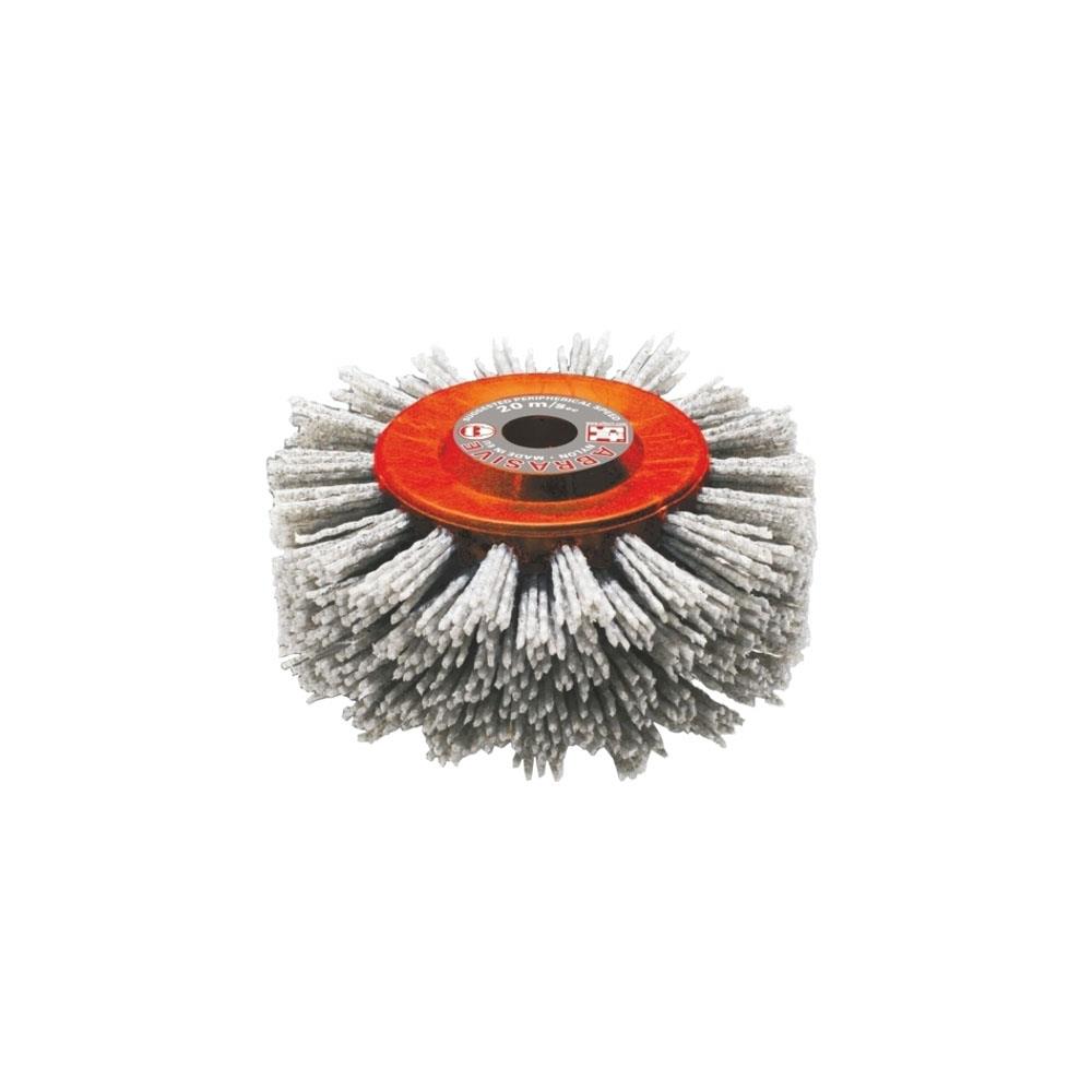 Spazzola rullo con foro filettato MA14 F Fili nylon abrasivo Diametro mm 140 Larghezza rullo mm 50 Diametro fili: gr 46=1,6 gr 60=1,5 gr 80=1,4 Adatta per pulizia legno, pietre, marmo e ferro