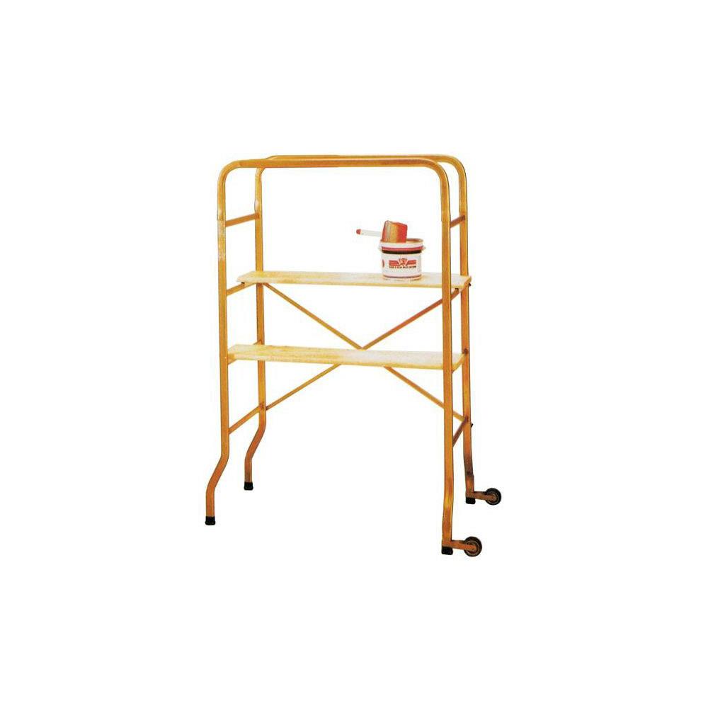 Struttura acciaio zincato ottonato Sezione tubolare 40x20 - Smontabile Dimensioni cm 130x54 h 174 Portata max kg 100 - Peso complessivo kg 18 Dotazione 2 ripiani legno ad incastro