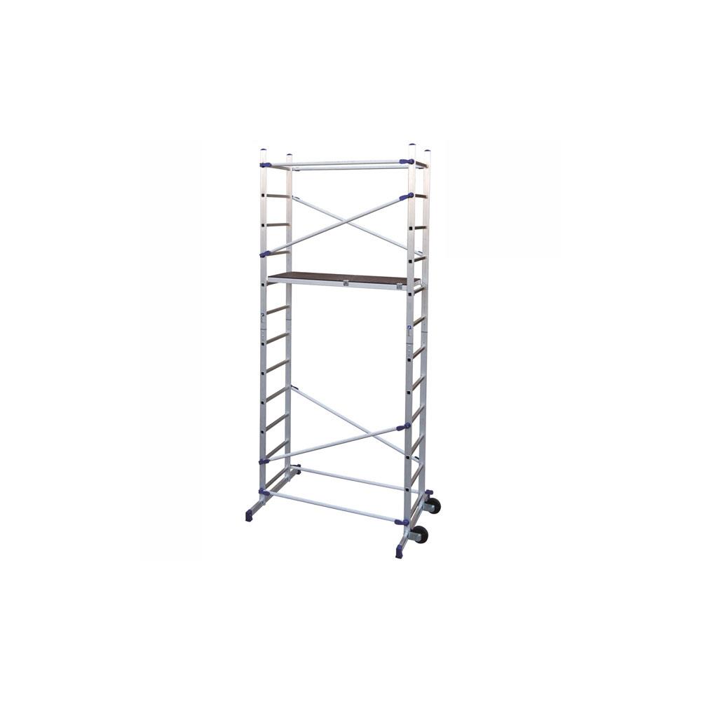 Struttura alluminio smontabile Sezione tubolare 60x24 Dimensioni cm 156x58 h 365 - Con ruote Portata max kg 150 - Peso complessivo kg 34,40 Dotazione1 ripiano alluminio/legno melaminico
