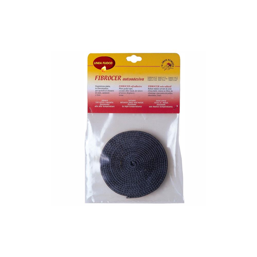Guarnizione chiusura piatta autoadesiva Fili vetro 6/9 micron intrecciati Ideale per forni, stufe ecaldaie gas Non sfilaccia al taglio Temperatura massima 550^