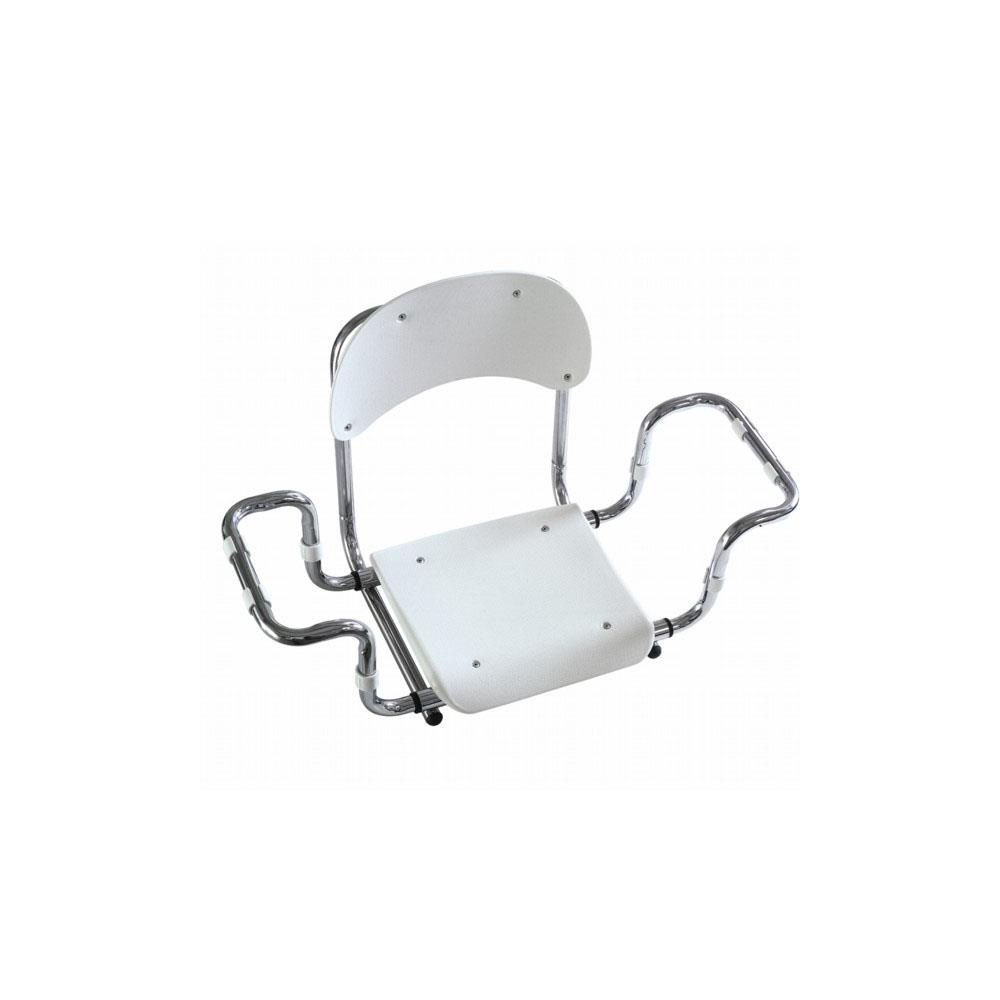 Piano e schienale in polipropilene - Tubo cromatoLarghezza regolabile 10 posizioni Schienale con blocco sicurezza Adatto per bordo vasca da cm 66 a cm 75 Portata kg 120 Gommini antiscivolo extragrip