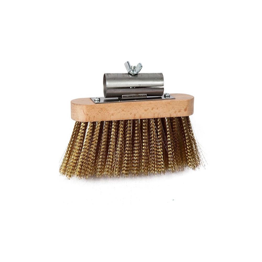 Spazzola setole ottone Base metallo con attacco girevole Adatta per forni a legna ed elettrici Dimensioni mm 130x32 - Peso kg 0,21 Fornita senza manico