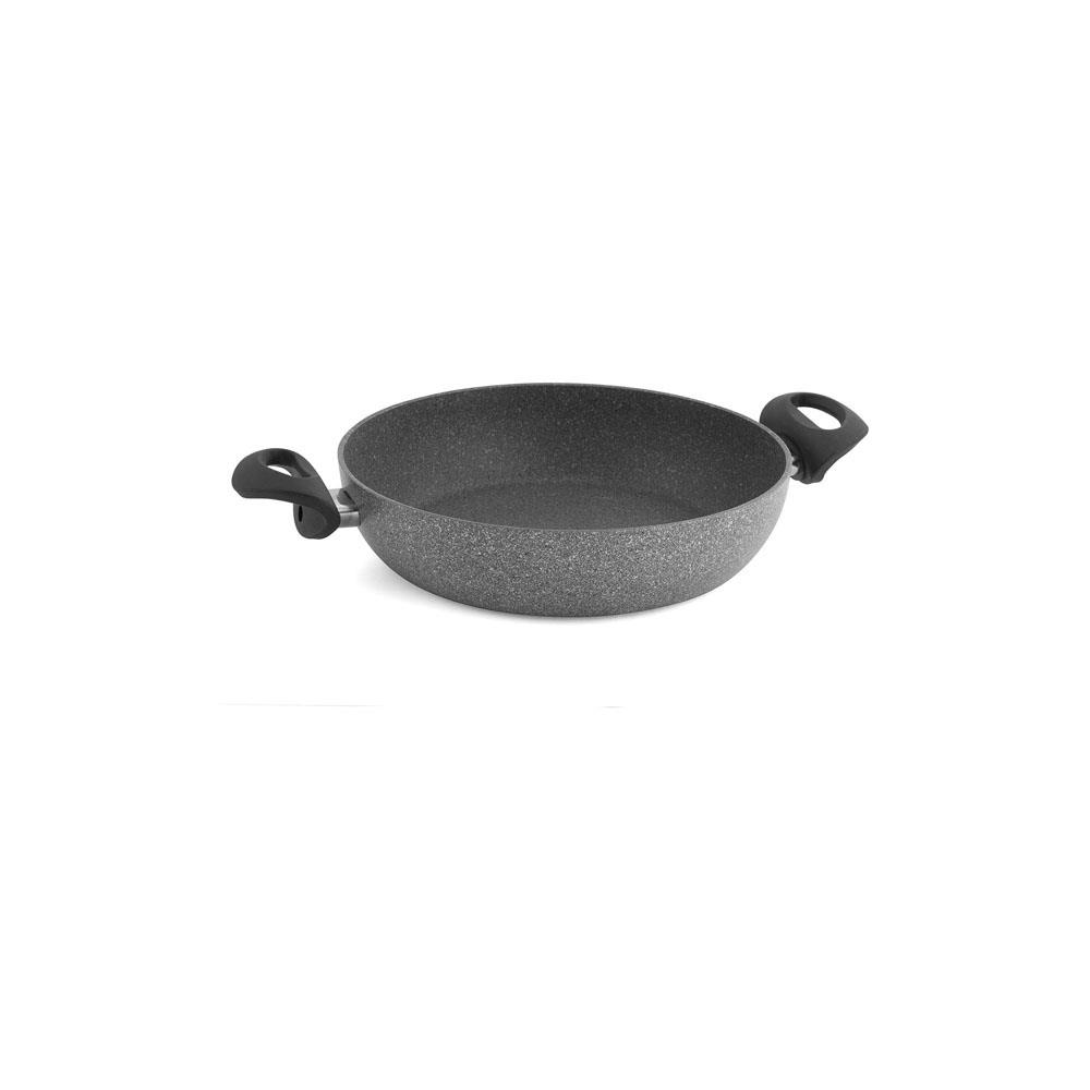 Alluminio - Spessore mm 3,5 Esterno effetto pietra Interno antiaderente Granitium Manico bachelite - Ghiera Thermopoint Adatta per induzione e tutte le fonti di calore Garanzia 5 anni