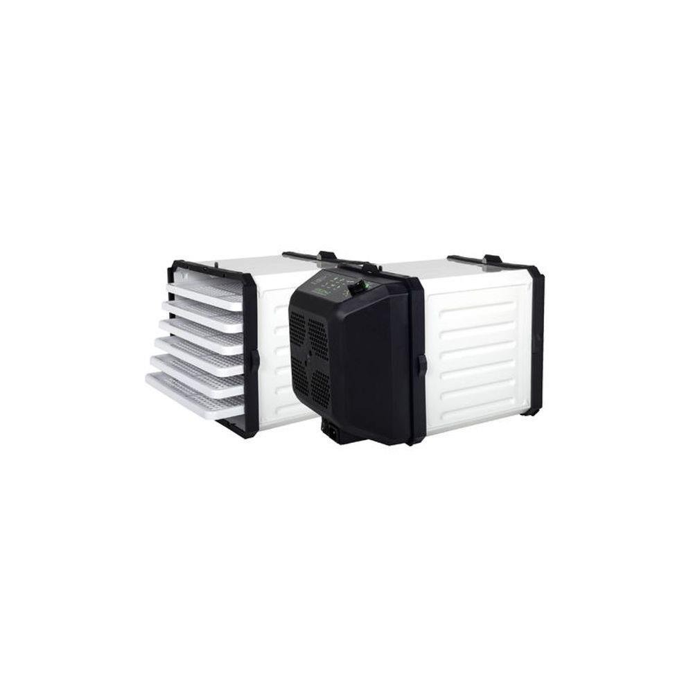 Watt 500 - Struttura in acciao e nylon Peso kg 4 - 6 cassetti in abs Termostato regolazione temperatura Tecnologia Wide Flow per essiccazione uniforme Termostato manuale Ideale per funghi, frutta, verdura, ecc Dimensioni: cm 35x26 h 27