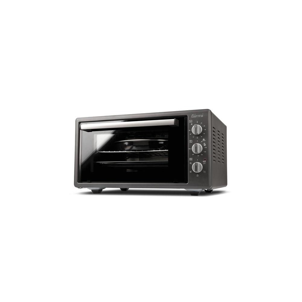Watt 1400 - Capacita' l 45 Timer 90 minuti - Controllo temperatura fino 280^ Vetro doppio - Resistenze acciaio corazzato 5 funzioni cottura - Luce interna - Ventilato Accessori: griglia, vassoio tondo e rettangolare Dimensioni interne cm 43,5x41 h 23,5 Dimensioni esterne cm 59x32,7 h 45,5