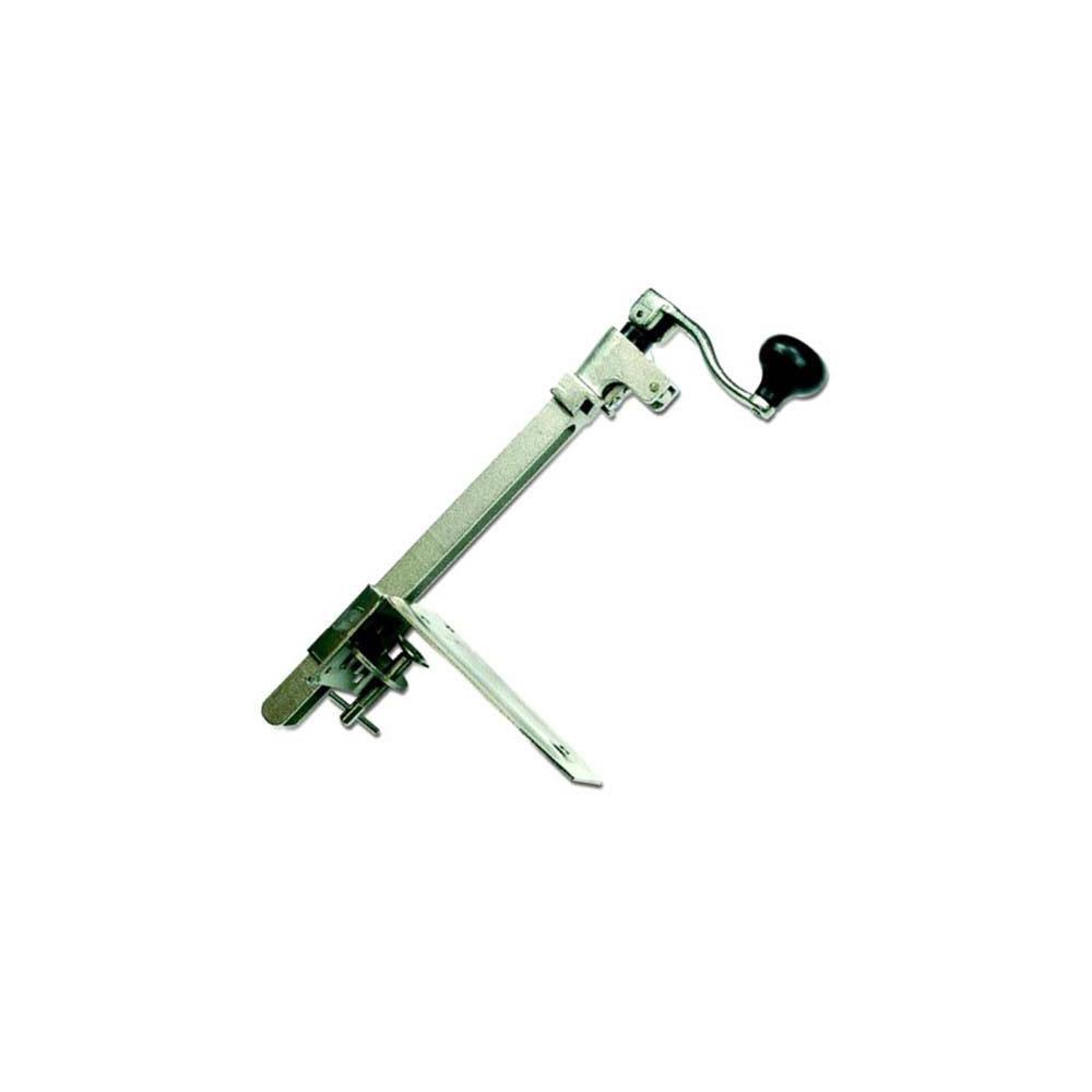 Acciaio inox Dotazione morsetto per fissaggio a banco Funzionamento a manovella Dimensioni: Lunghezza totale albero senza pomolo cm 41 Diametro massimo di rotazione del manico cm 30 Base di fissaggiomm 210x100x2,5 Utilizzabile con latte altezza cm 23