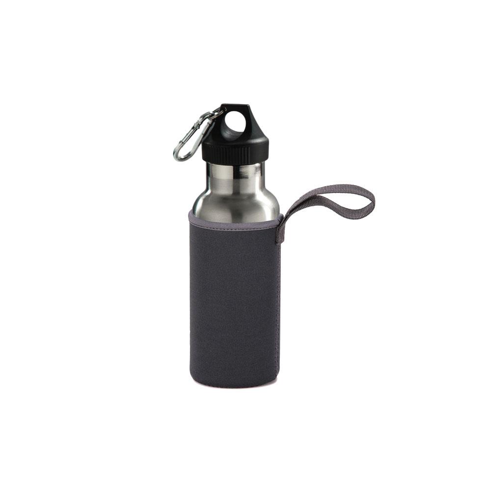 Acciao inox 18/10 Doppia parete Apertura tappo a vite con guarnizione silicone Custodia neoprene - Moschettone acciaio Conserva la temperatura dei liquidi caldi e freddi