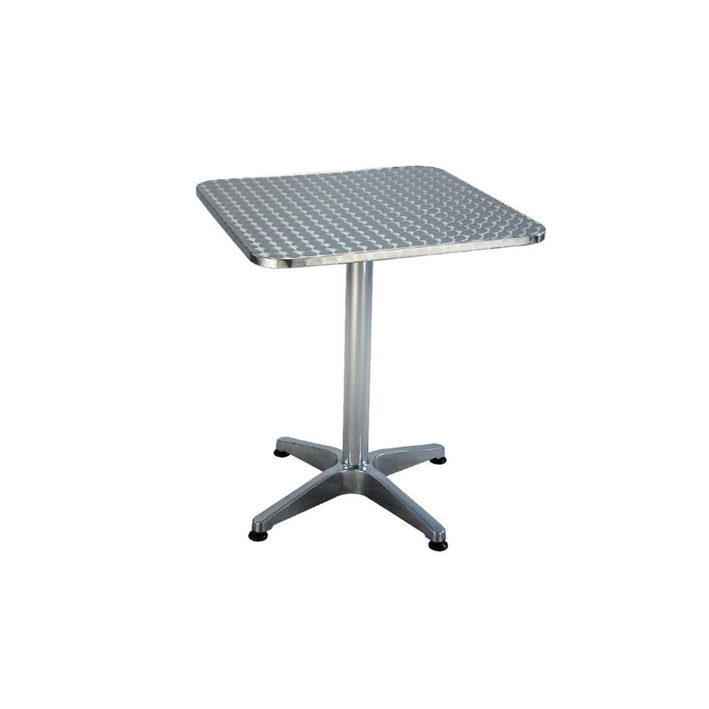 Piano acciaio inox 304 - Bordo risvoltato Strato interno compensato mm 18 Strato inferiore melamina Palo in alluminio mm 60x1,5 - 4 piedi Dimensionicm 70x70 h 70 - Peso kg 10