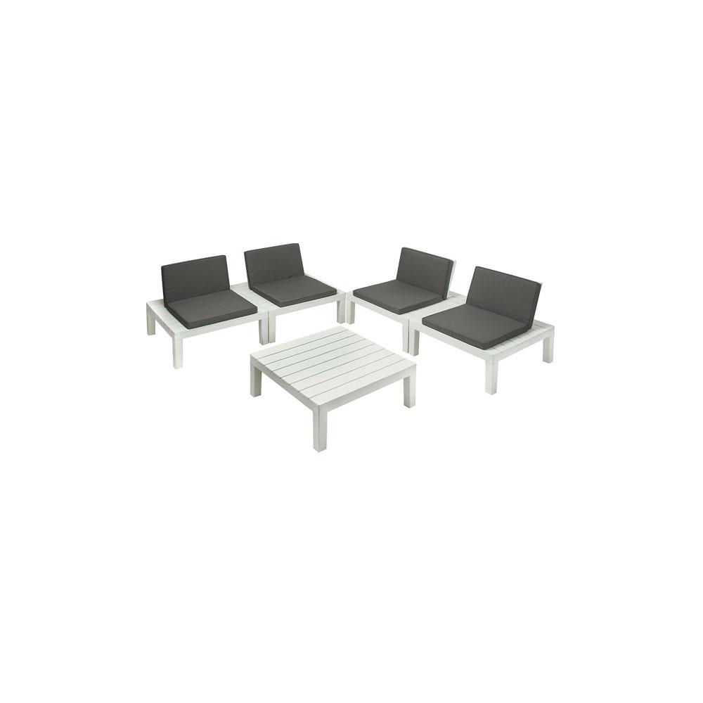 Resina Cuscini antracite Composizione: 2 divani cm 158x79 h 58 1 tavolino cm 79x79 h 58 Resiste agli agenti atmosferici/muffe/smog/polvere Non adattoad utilizzo professionale Peso kg 44,50 - Effettodoghe/legno