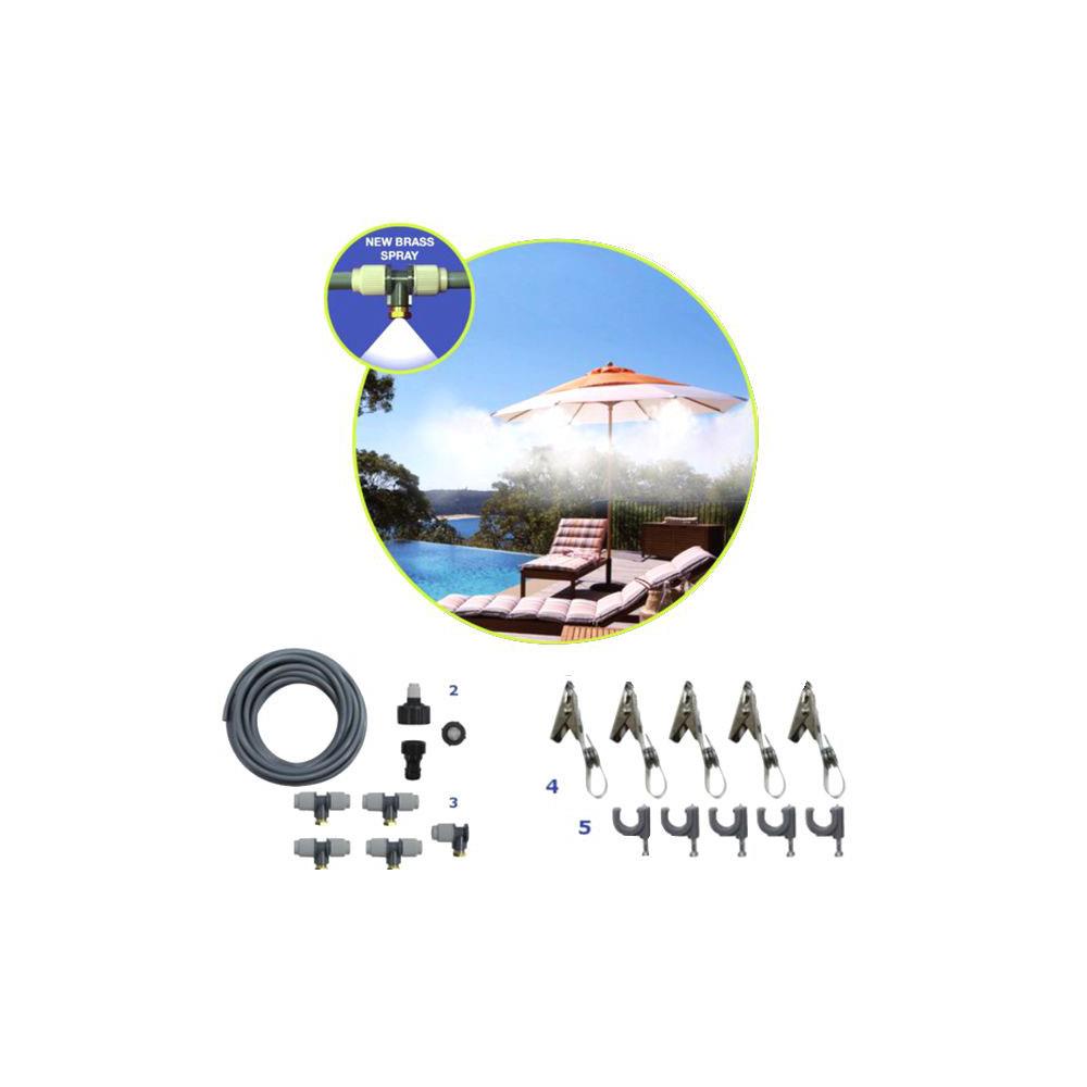 Kit completo per raffrescamento Riduce temperatura anche di 10^ Funziona con normale pressione del rubinetto Facile da montare - Tubo dotazione m 7,5Ideale per gazebi, patii e terrazze