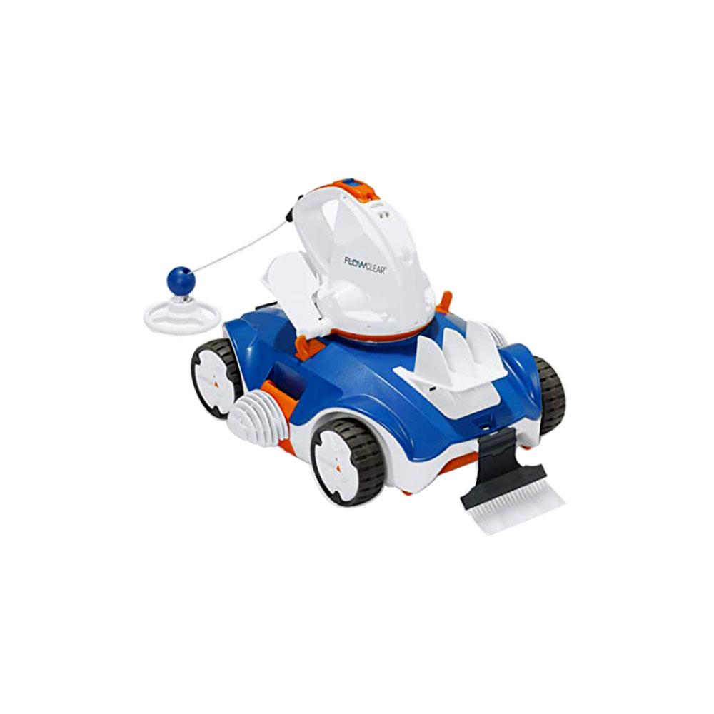 Adatto per piscine a fondo piano fino a mq 45 Batteria litio ricaricabile Tempo ricarica h 5/6 Autonomia 90 minuti circa Sensore livello acqua - Ruote antiscivolo Velocita' pulizia 1000 mq/h Usare con filtri a pompa da l 2700/h o superiori