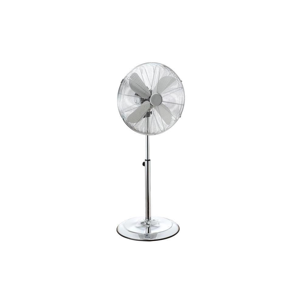 Watt 60 - Funzionamento 3 velocita' Oscillazione orizzontale Inclinazione verticale regolabile 4 pale mm 400 con griglia protezione Altezza regolabile cm 100/140 Struttura acciaio cromato Pale in alluminio No timer