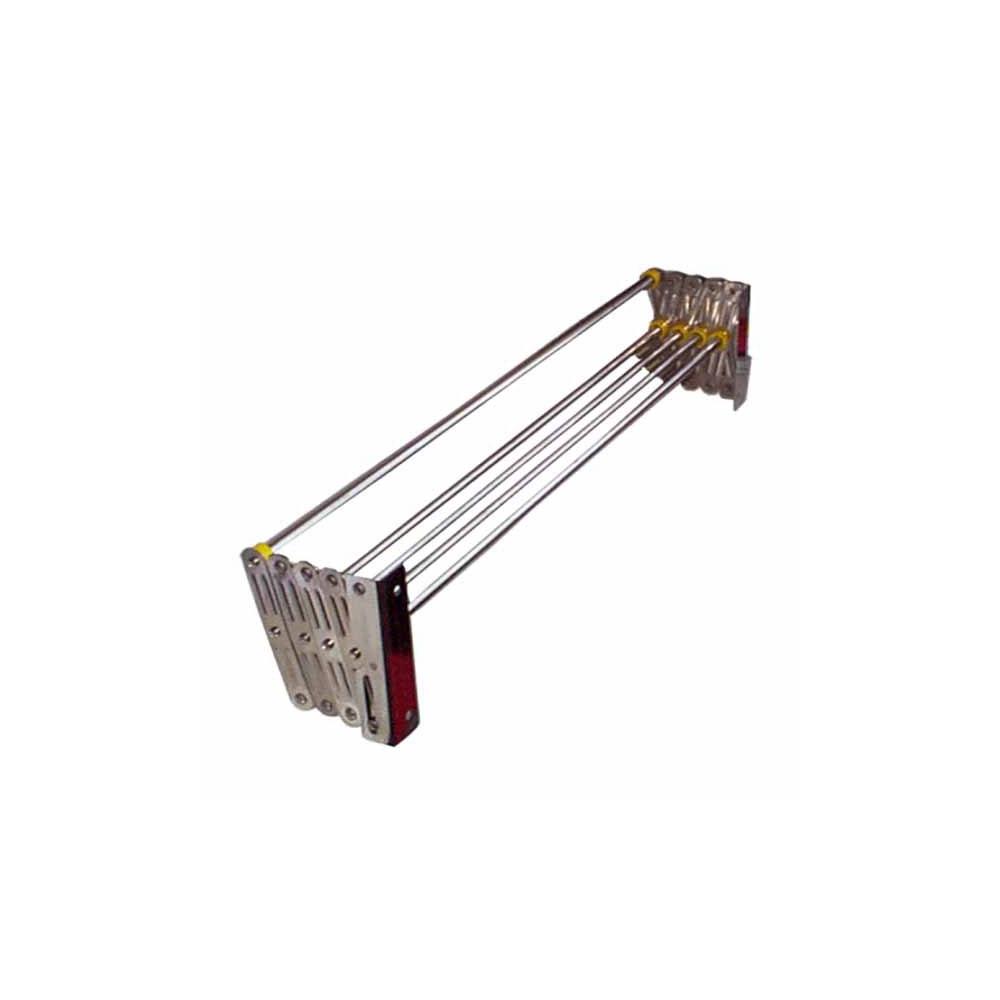 Bacchette acciaio inox - Telaio acciaio inox Pesokg 0,9/1,2/1,6 Funzionamento a pantografo Stenditura m 3 - cm 60 Stenditura m 4 - cm 80 Stenditura m 5 - cm 100 Stenditura m 6 - cm 120 Fissaggio amuro con tasselli