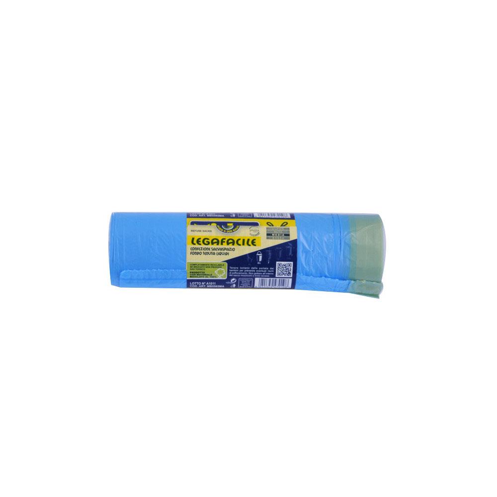 Materiale riciclato 100% - Resistenza media Fondotenuta liquidi - Saldatura a stella Con maniglie - Confezione salvaspazio Dimensioni cm 55x65 peso g 12 my 19