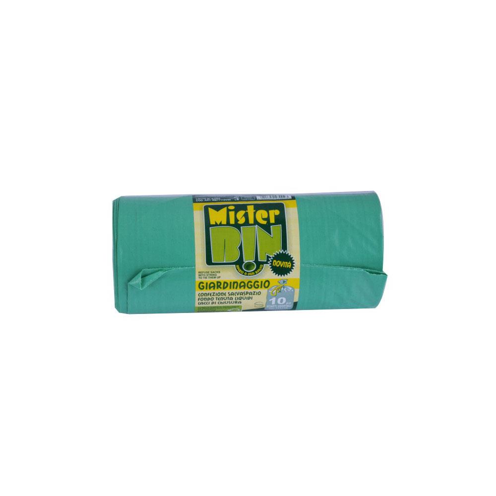 Materiale riciclato 100% - Resistenza media Fondotenuta liquidi - Saldatura a soffietto Lacci di chiusura - Confezione salvaspazio Dimensioni cm 77x110 peso g 75 my 50 Dimensioni cm 95x110 peso g100 my 50