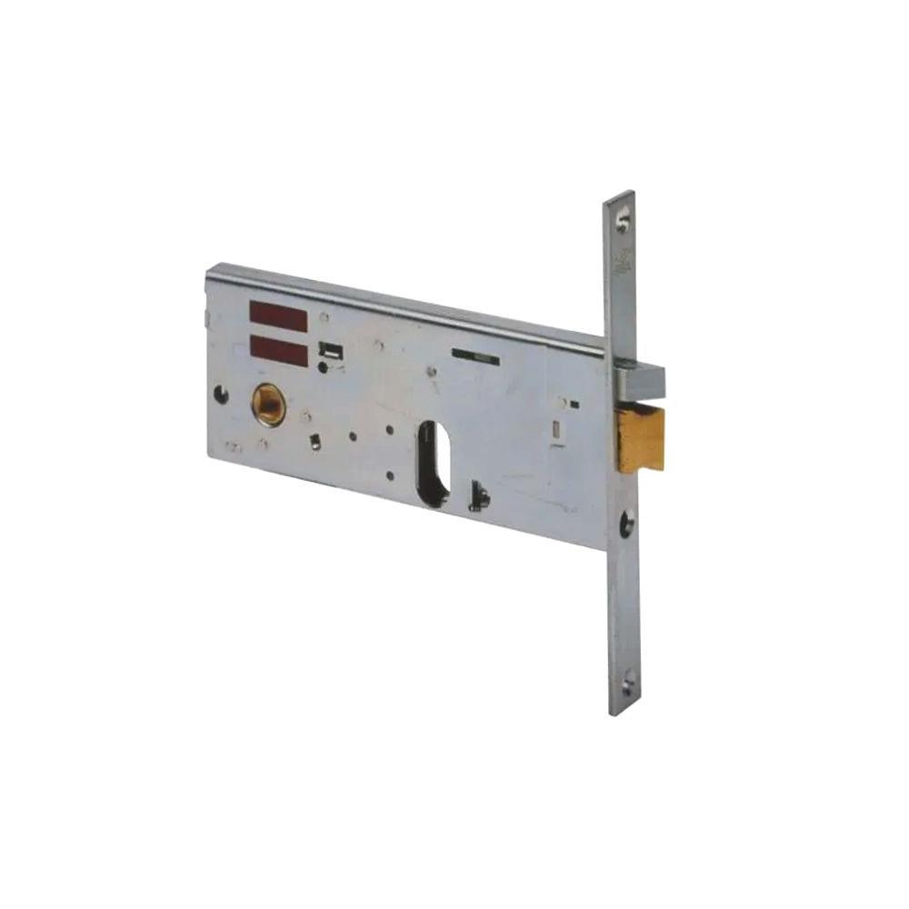 Elettroserratura V 12 porte alluminio infilare Zincata - Scrocco autobloccante Viti fissaggio - Ambidestra Cilindro 08210 non incluso Fermo a giorno Scatola 16x64 - Frontale 16x160