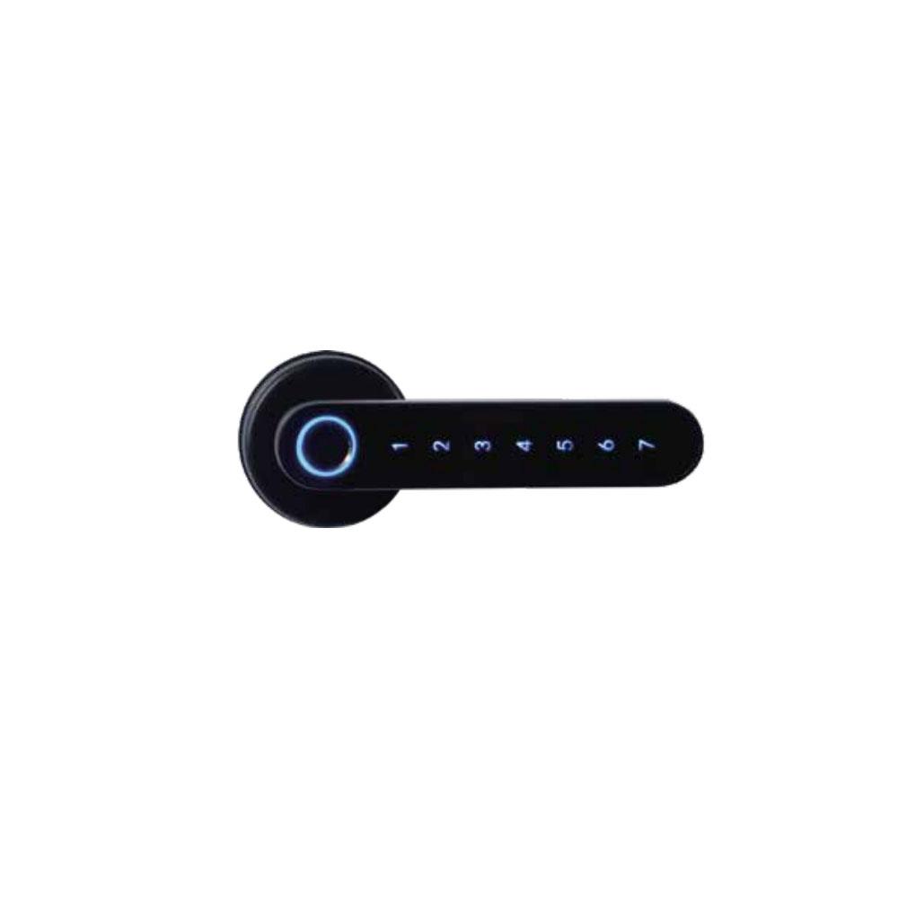 Zama verniciata colore nero Ambidestra - Quadro maniglia mm 8 Bocchetta foro Yale mm 57 Maniglia esterna con tastiera luminosa invisibile attivabile a sfioramento Apertura tramite impronta digitale, smartphone o codice numerico 7 cifre Ideale per controllo accessi Programmabile per fascia oraria Alimentazione 4 pile AAA incluse
