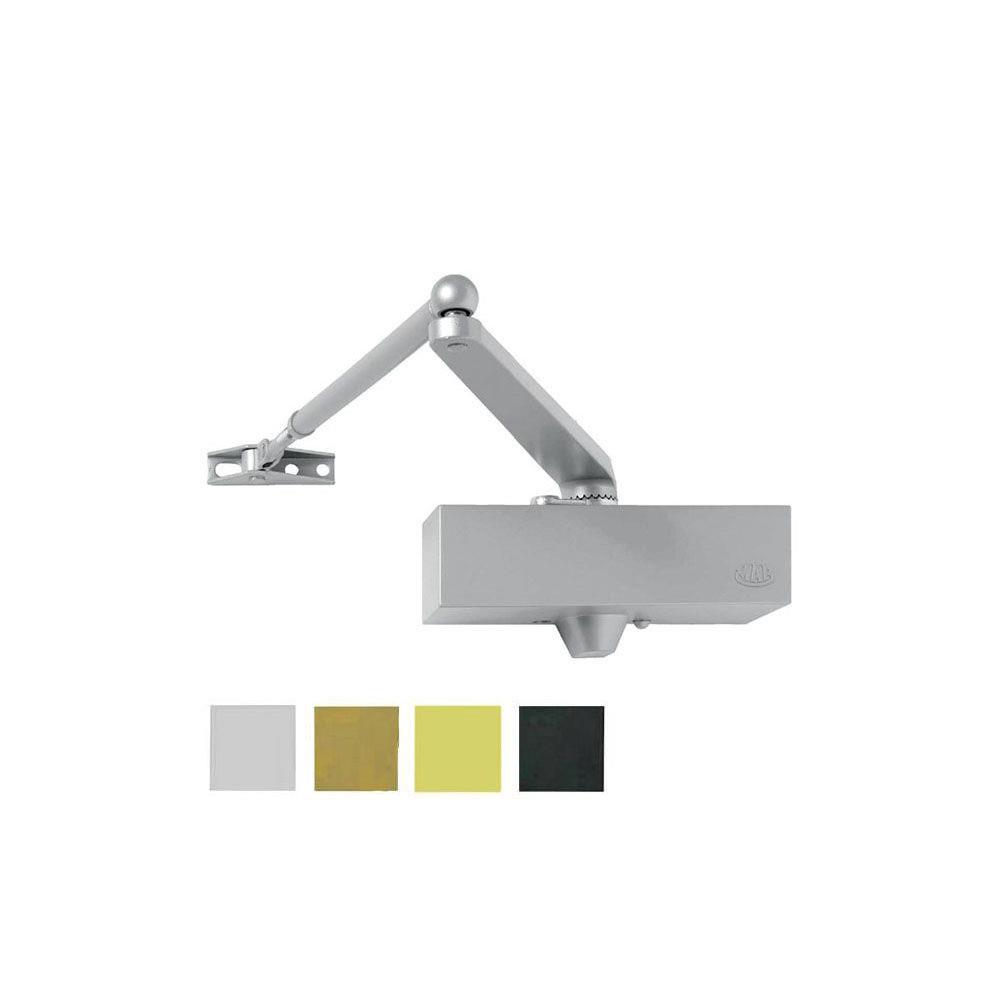 Corpo monoblocco ghisa - Custodia ABS Braccetto acciaio con arresto Regolazione velocita' chiusura e forza colpo Porte destre e sinistre a battente esterne ME0502 forza EN2 porte cm 85 dimensioni 180x70x71 ME0503 forza EN3 porte cm 95 dimensioni 180x70x71