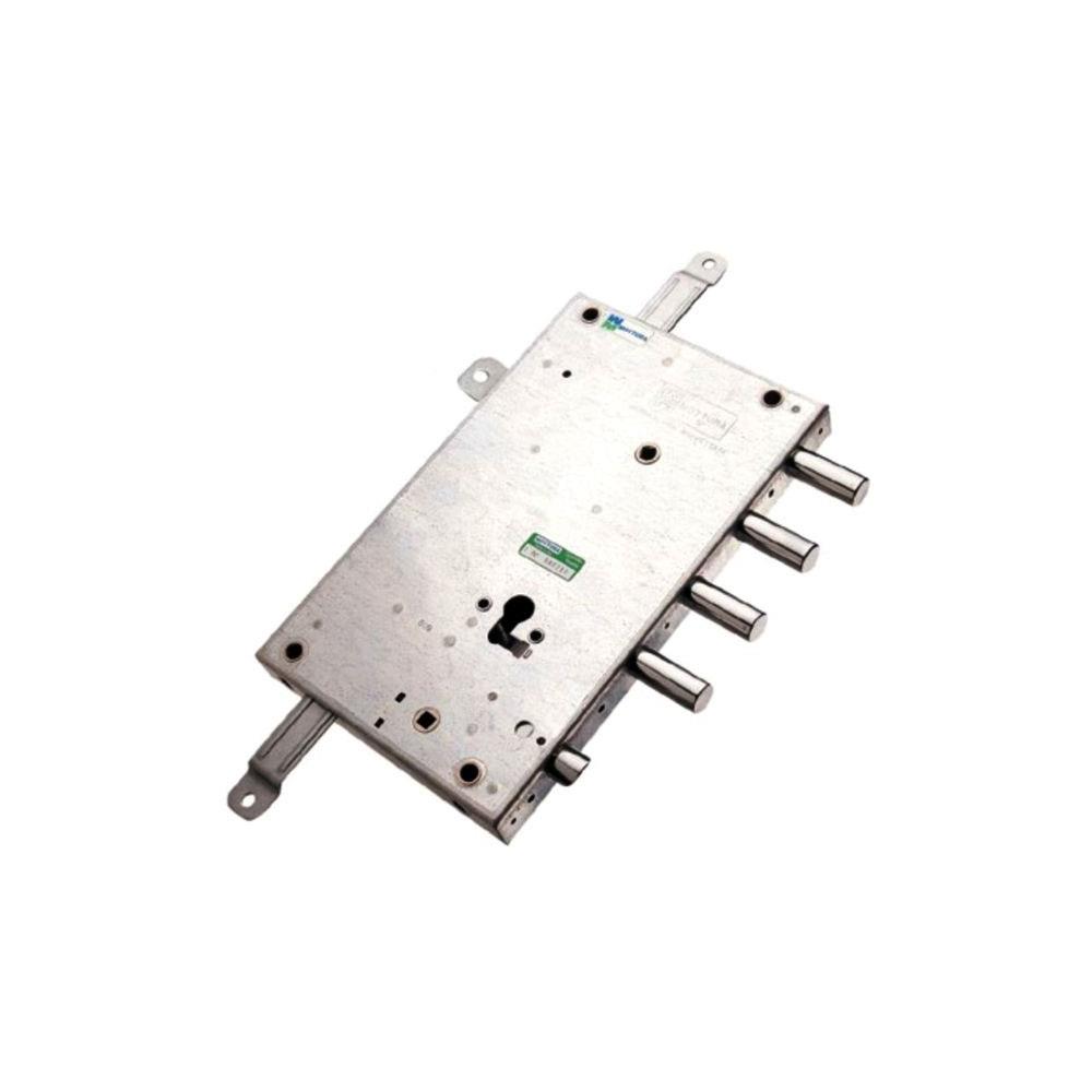 Serratura cilindro tipo yale applicare legno 2 chiusure verticali Catenacci laterali 4 pistoni e scrocco Scatola mm 185x305x32 - Entrata mm 70/110 Fornita senza aste e cilindro Adatta per porte sicurezza Modello SERRABLINDA