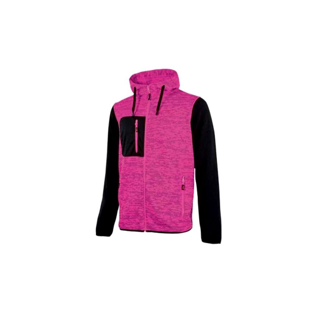 Poliestere 100% g/mq 310 Tessuto interno pile Chiusura zip lunga Polsi e fascia girovita maglia elastica Collo alto - Cappuccio regolabile 2 tasche frontali con zip Tasca portacellulare con zip Colore black fucsia