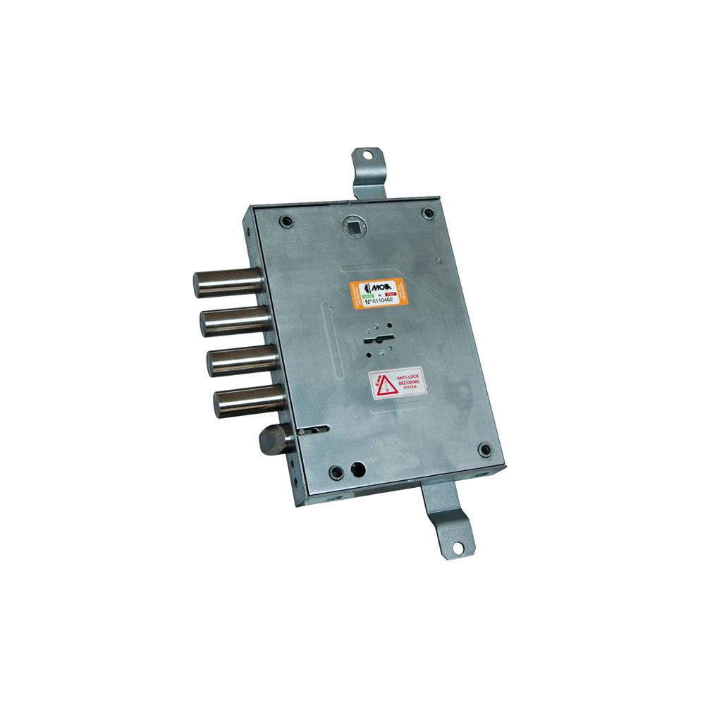 Serratura doppia mappa Infilare porte blindate 2chiusure verticali Catenacci laterali 4 pistoni escrocco Interasse catenacci mm 28 Scrocco azionato da maniglia quadro mm 8 e chiave Scatola mm 145x206x30 - Entrata mm 73 Dotazione 3 chiavi Manigliae aste non comprese Compatibile serrature Atra e Mottura