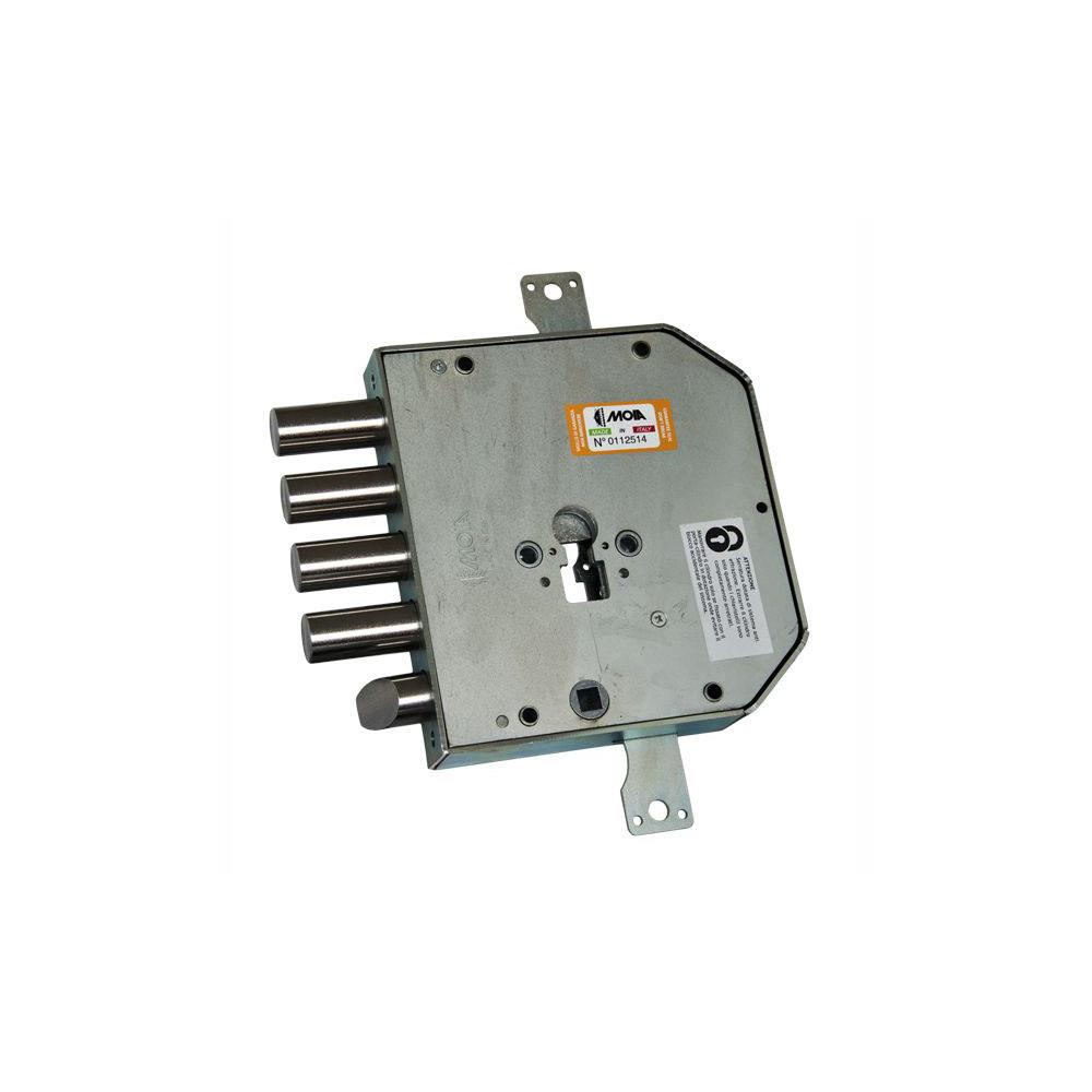 Serratura cilindro europeo Infilare porte blindate Trappola anti effrazione - Fori protettore mm 38 2 chiusure verticali Catenacci laterali 4 pistoni e scrocco Interasse catenacci mm 26 - Sporgenzamm 9 Scrocco azionato da maniglia quadro mm 8 e chiave Scatola mm 153x143x30 - Entrata mm 63 Cilindro e aste non compresi Compatibile serrature Antonioli