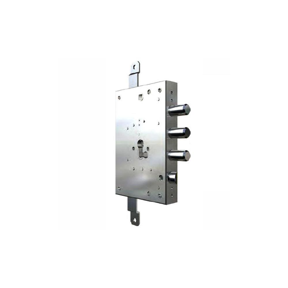 Serratura cilindro europeo infilare porte blindate Movimento ad ingranaggi Trappola anti effrazione- Fori protettore mm 38 2 chiusure verticali Catenacci laterali 3 pistoni e scrocco Interasse catenacci mm 37 Scrocco azionato da maniglia quadro mm 8 e chiave Scatola mm 136x178x29,5 - Entrata mm 61 Aste non incluse