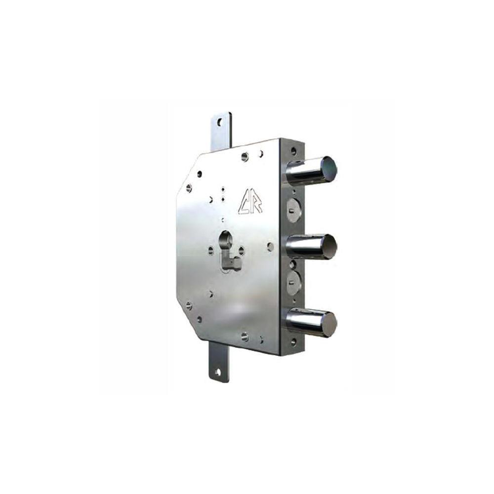 Serratura cilindro europeo infilare porte blindate Movimento ad ingranaggi Trappola anti effrazione- Fori protettore mm 38 2 chiusure verticali Catenacci laterali 3 pistoni Interasse catenacci mm 56Scatola mm 130x164x29,5 - Entrata mm 60,5 Aste non incluse