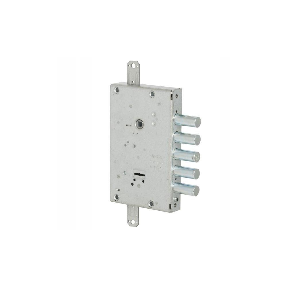 Serratura doppia mappa applicare legno Catenacci laterali 5 pistoni Interasse catenacci mm 28 2 chiusure verticali Scatola 125x203 - Entrata mm 64 Sistema gorges Cambio Facile Adatta per porte sicurezza Aste non incluse