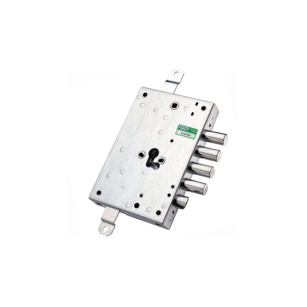 Serratura cilindro europeo applicare legno Movimento ad ingranaggi 2 chiusure verticali Catenacci laterali 4 pistoni e scrocco Interasse catenacci mm28 Scatola mm 206x146x31 - Entrata mm 73 Cilindroe aste non compresi