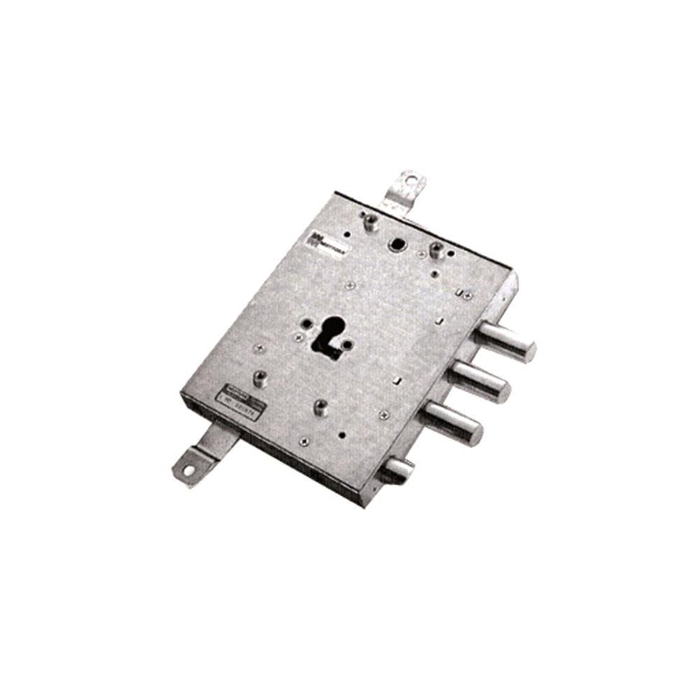 Serratura cilindro europeo applicare legno Movimento ad ingranaggi 2 chiusure verticali Catenacci laterali 3 pistoni e scrocco Interasse catenacci mm37 Scatola mm 162x206x30 - Entrata mm 89 Cilindroe aste non compresi