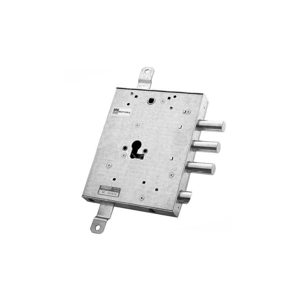 Serratura cilindro europeo applicare legno 2 chiusure verticali Catenacci laterali 3 pistoni e scrocco Interasse catenacci mm 37 Scatola mm 206x162x30 - Entrata mm 89 Cilindro e aste non compresi