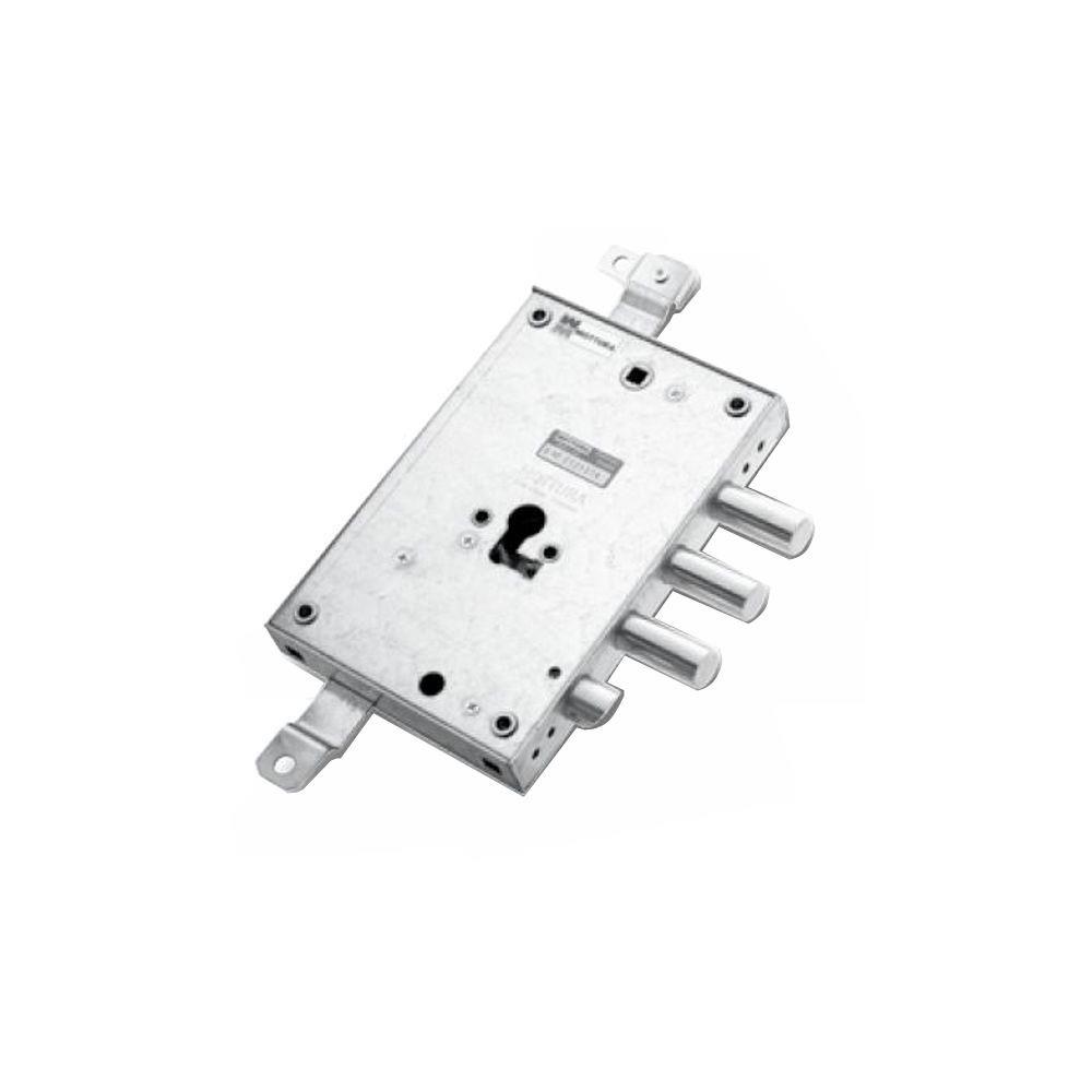 Serratura cilindro europeo applicare legno 2 chiusure verticali - Sbalzo asta superiore mm 24 Catenacci laterali 3 pistoni e scrocco Interasse catenacci mm 37 Scatola mm 136x206x30 - Entrata mm 63 Cilindro e aste non compresi
