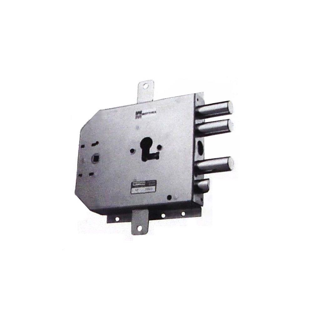 Serratura cilindro europeo applicare legno 2 chiusure verticali Catenacci laterali 3 pistoni e scrocco Interasse catenacci mm 25 Scatola mm 182x169x30 - Entrata mm 63 Fornita senza aste e cilindro