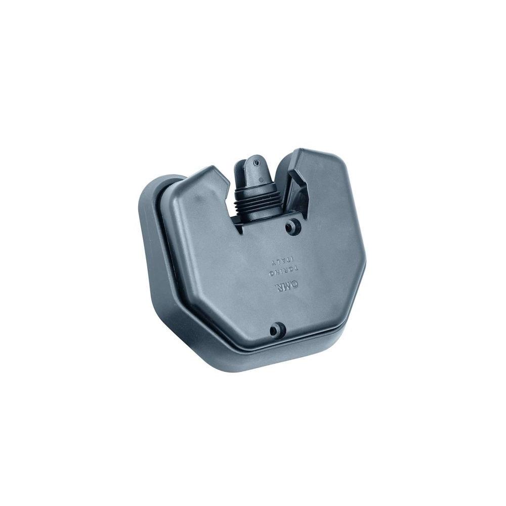 Gancio acciaio nichelato e plastica Applicazione interna corpo bidoni quadri Apertura con chiave cifrata 2002/2005 Apertura e chiusura automatica durante svuotamento Sistema anti apertura accidentaleAggancio corpo inferiore interno coperchio Dotazione viti fissaggio