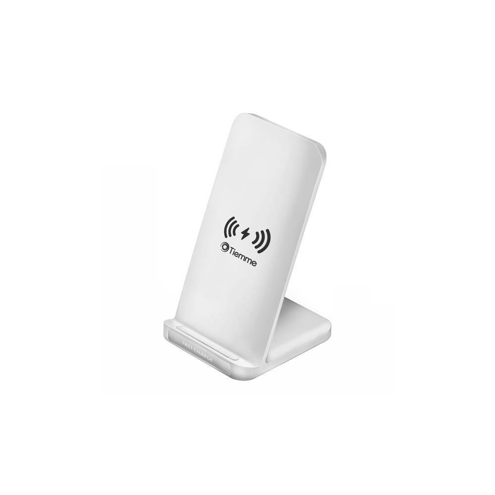 Supporto smartphone Potenza ricarica wireless watt 15 Doppia antenna di ricarica Luce LED funzionamento Dotazione cavo entrata USB-A uscita Type C Adatto scrivania e mensole Colore bianco