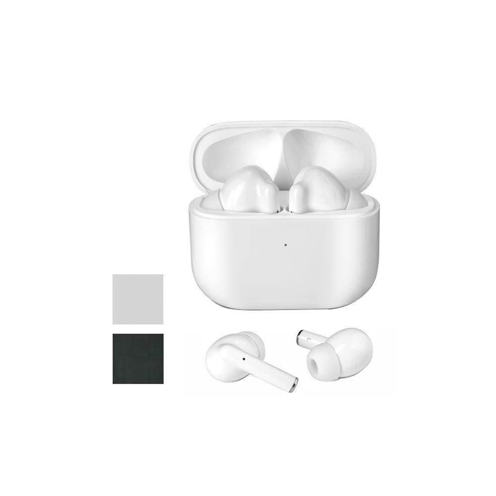 Auricolare smartphone bluetooth Microfono integrato Funzioni attivabili con input tattili Custodia di ricarica chiusura magnetica Cavo ricarica entrata USB-A uscita Type C Gommini ergonomici lavabiliColore bianco/nero