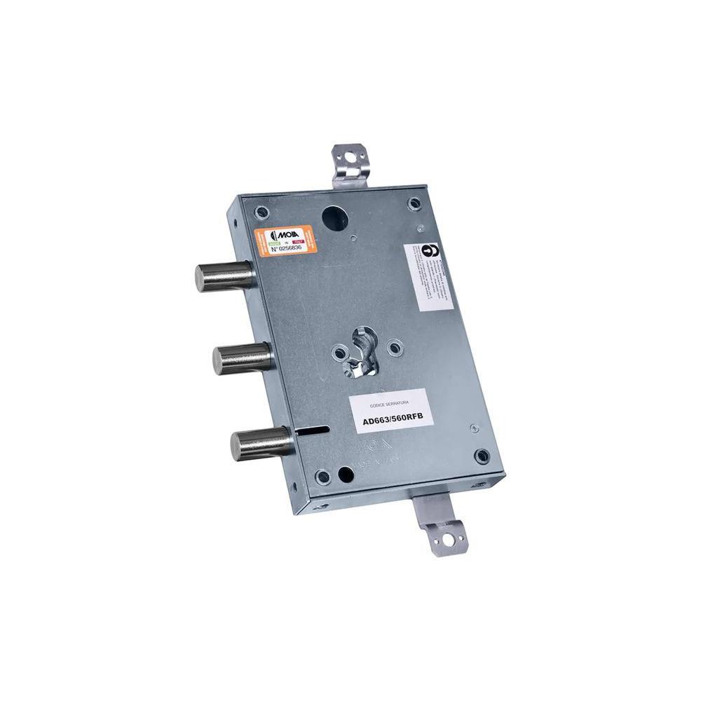 Serratura cilindro europeo Infilare porte blindate - Movimento ad ingranaggi Trappola anti effrazione - Fori protettore mm 38 2 chiusure verticali Catenacci laterali 3 pistoni Interasse catenacci mm56 Scatola mm 145x206x30 - Entrata mm 73 Cilindroe aste non compresi Compatibile serrature Atra e Mottura