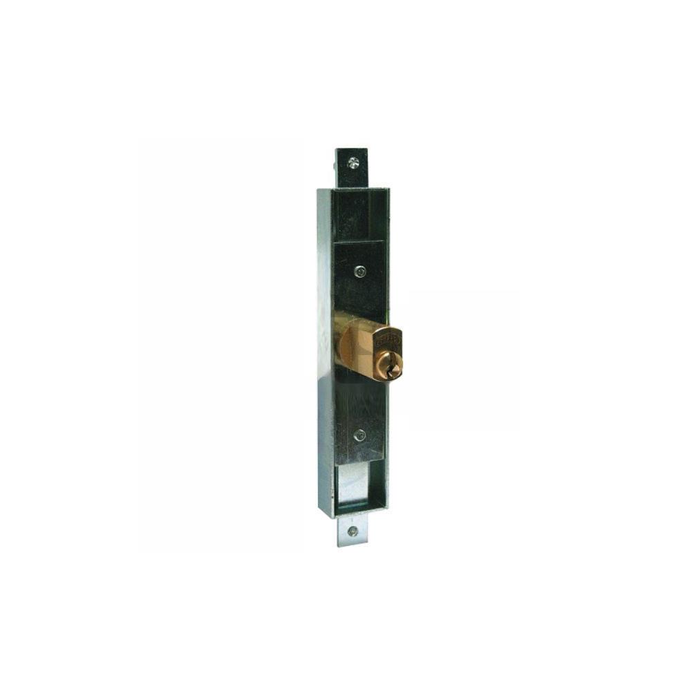 Serratura verticale per serrande fisarmonica 2 punti di chiusura verticali Movimento chiave esternoScatola mm 26,5x140 Cilindro 6802 fresato sporgenza mm 22