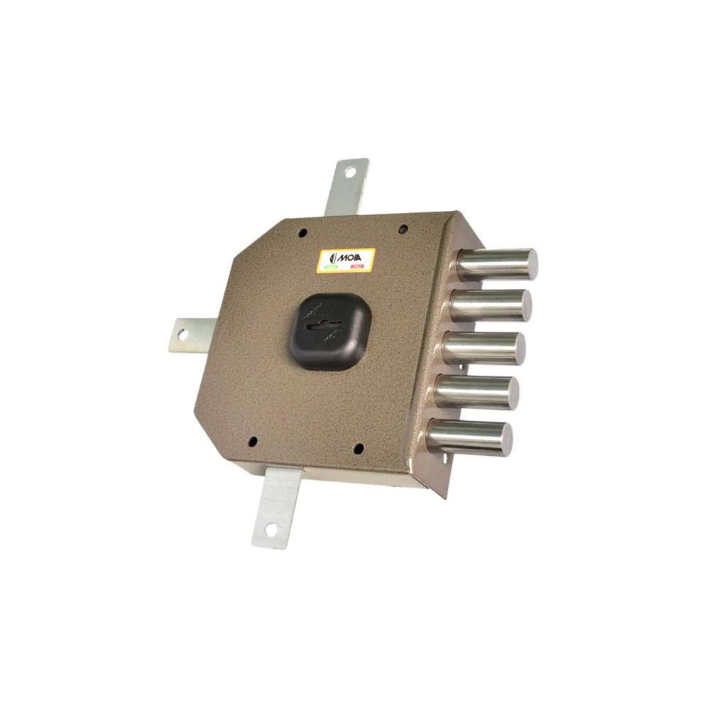 Serratura doppia mappa applicare legno 4 chiusureverticali Catenacci laterali 5 pistoni Interasse catenacci mm 25 Scatola mm 143,5x153,5x29 - Entrata mm 63 Dimensioni canotto mm 30x59 3 chiavi Aste e deviatore non inclusi