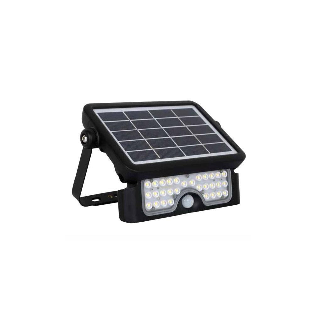 Modello fisso con staffa fissaggio snodata Corpo plastica - Sensore movimento/crepuscolare Led watt5 lm 500 - Luce fredda 4000K Alimentazione 1 batteria Li Ah 3,0 ricaricabile Fascio luce 90^ Pannello fotovoltaico Dimensioni mm 217x33 h 150 - Protezione IP65